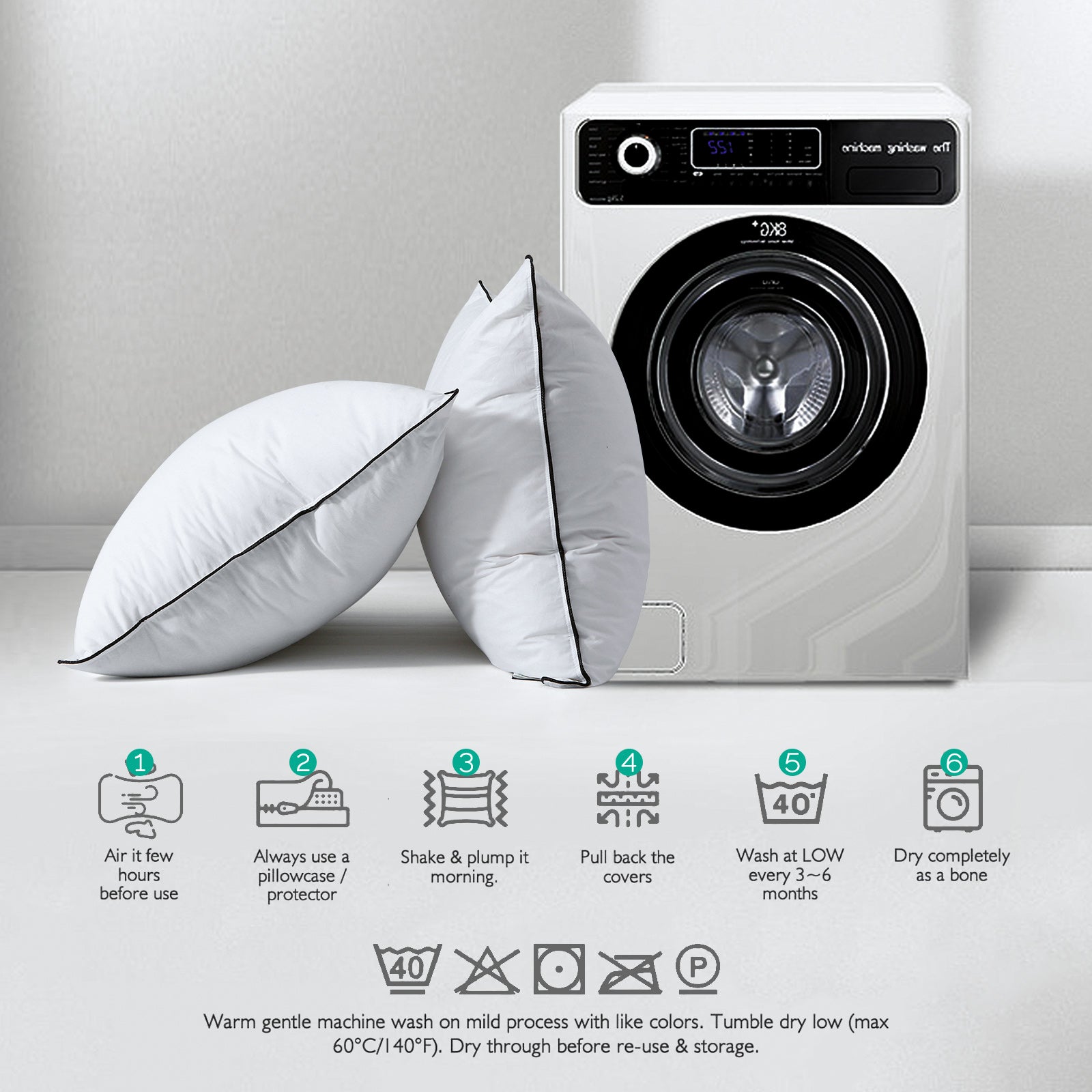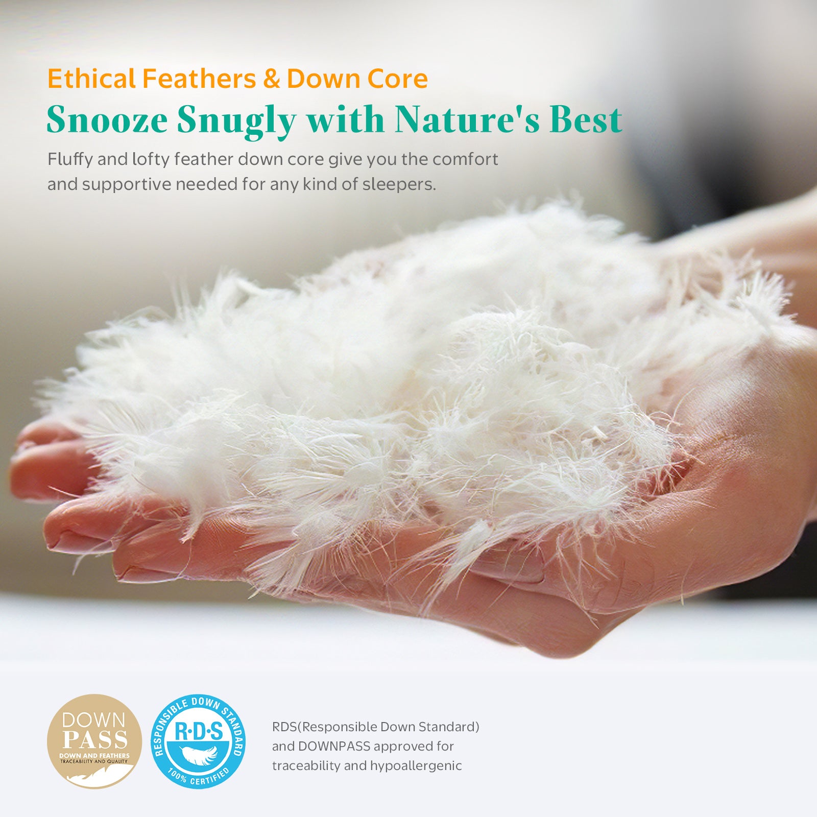 Premium-Quality Goose Feathers Down Pillows help ensure it provides the best sleeping experience. Triple Chamber Design : Encased in a 100% Organic Cotton cover for its softness skin-friendly and absorb unpleasant odors. Then with a Down-Like Top LayerTM which prevents feathers from poking out and eliminates any crunchy poking feeling. The inner middle filler of 5% down and 95% feather offer medium support and breath-ability. Piped Double-Stitched Black Edge crafted with fine workmanship for durability. Ideal for daily use with long-lasting comfort.
